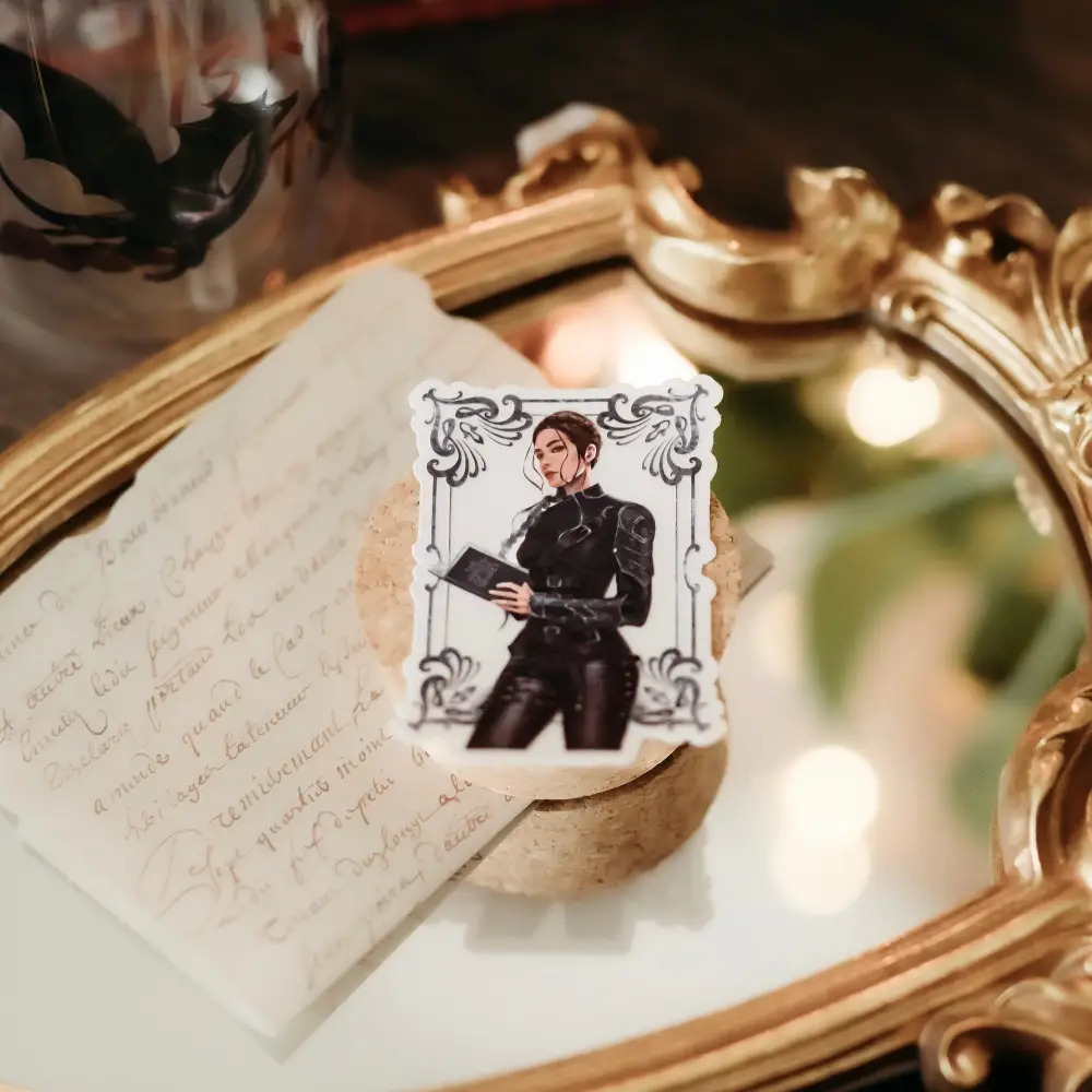 From our Character Reading Stickers Collection! This sticker features Violet reading The Fables of the Barren from The Fourth Wing by Rebecca Yarros🖤